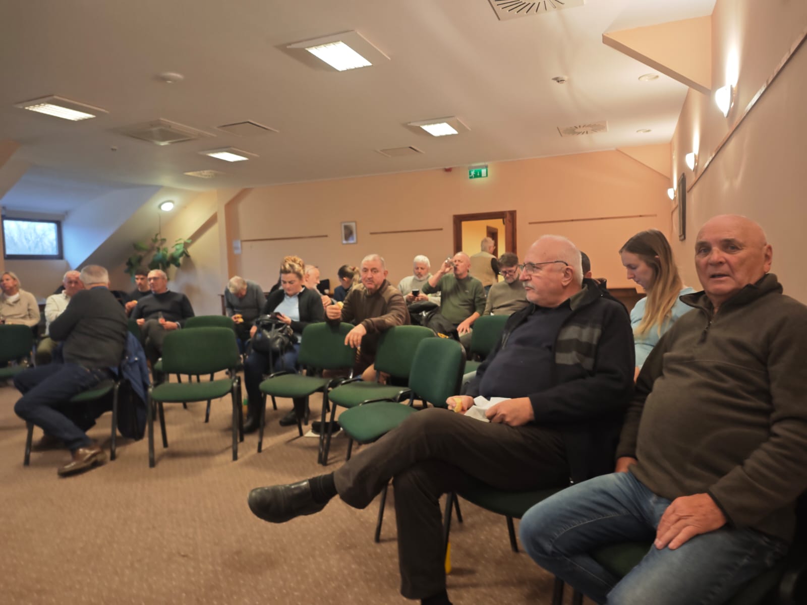 A Sarlóspuszta Club Hotelben megszokott finom vacsora után a tenyésztők egy része még sokáig beszélgetett -- ilyenkor jönnek egy pohár bor mellett a világmegváltó gondolatok.
